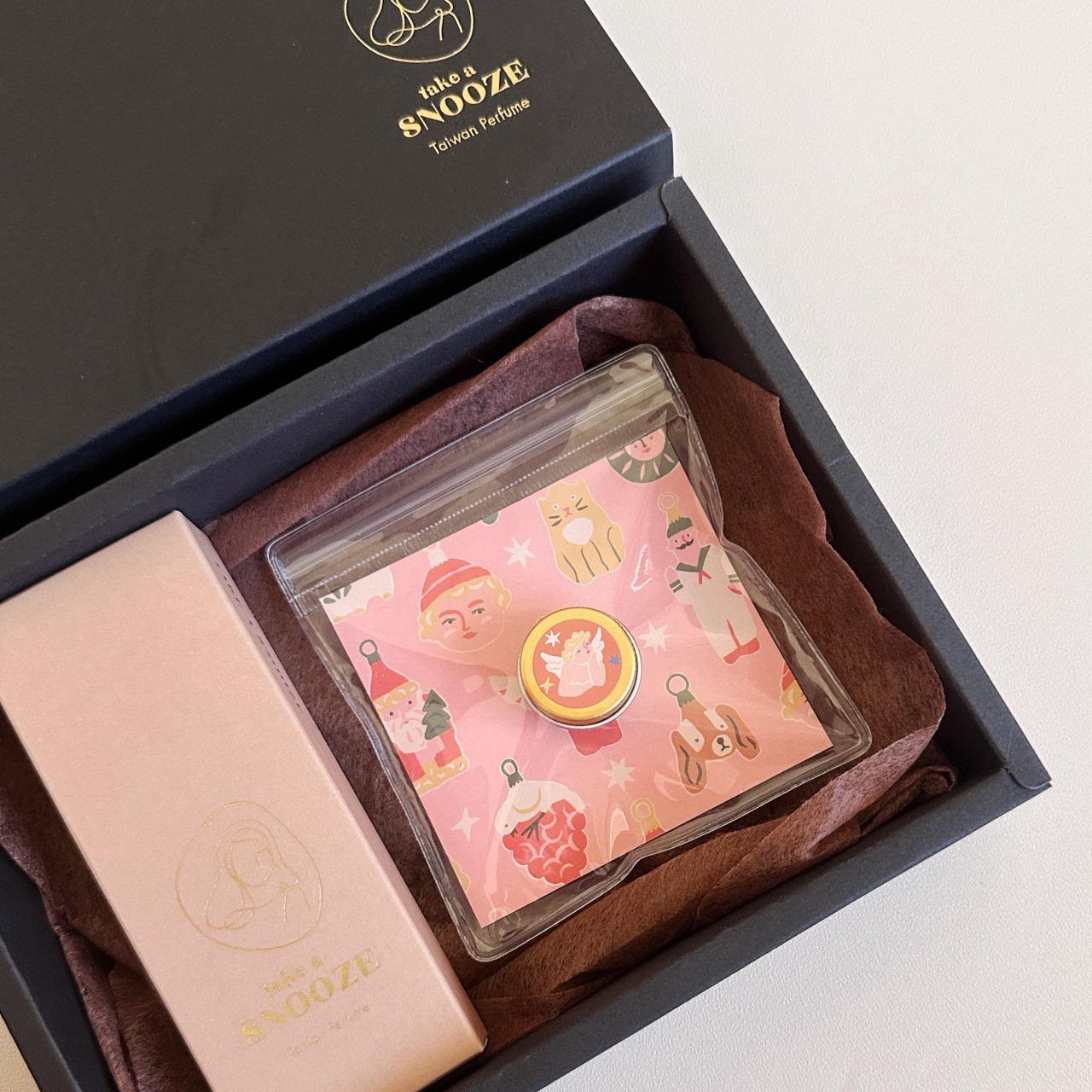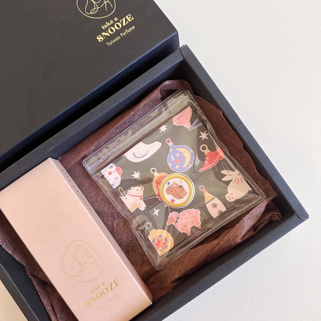 購買可選擇燙金禮盒包裝,無需禮盒包裝者可提供 Take a Snooze 瞇一下提袋。